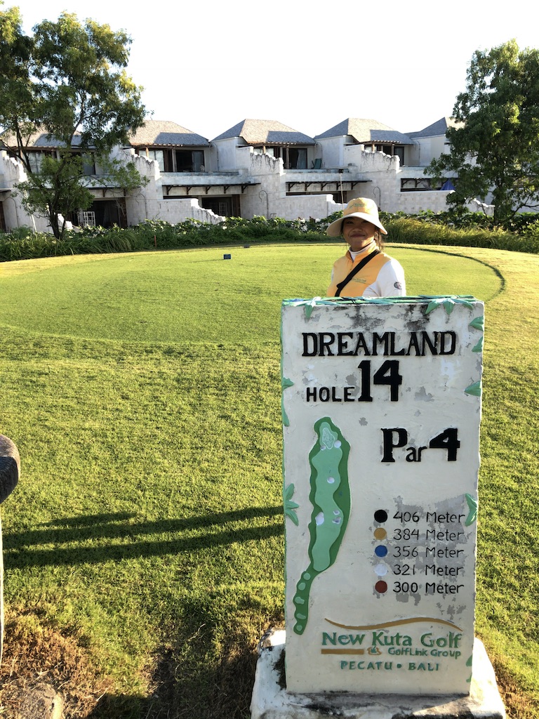 New Kuta Golfの敷地内にあるLe Grande Baliに宿泊。午後1時に予定通りチェックインを済ませて少し休憩。4時ごろからトワイライトでプレイできるかどうか問い合わせてみたところ、ゴルフ場につなぐから聞いてみてくれとのこと。どうやらホテルはゴルフ場の敷地内にあるが経営は別のようだ。ゴルフ場に電話して問い合わせたところOKとの返事だったのでホテルのフロントにお願いしてゴルフ場まで送ってもらいチェックイン。基本的に午後3時以降であれば予約がなくても1人でも週末でもドロップインでプレイさせてくれるとのこと。料金も3時以降は安くなってカート、キャディ、保険込みで9000円ほど。キャディーのチップは相場がRp150000とのことなので、日本円にすると1300円ほどか。